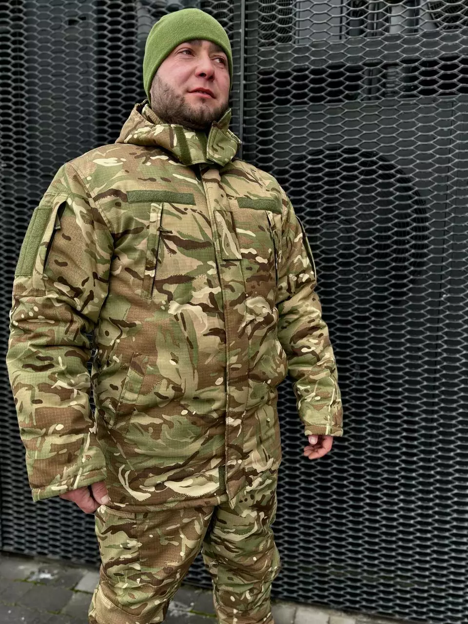 Зшитий із якісної тканини — ріп-стоп, яка витримує екстремальні навантаження й добре переться, не втрачаючи кольору. Модель створена спеціально для використання в зимовий період військовослужбовцям, охоронцям, а також підійде мисливцеві та рибалці. Бушлат із флісовою підкладкою і силіконовим утеплювачем, дуже теплий і грівальний за -20 °C. Фасон зимової куртки не обмежує рухів. Куртка застібається на блискавку уздовж блискавки, розташовані липучки для захисту від вітру Комір-стійка на липучці, капюшон на затяжках оберігає горло від вітру та снігу. На грудях 2 кишені 2 знизу 1 на рукаві на змійці 1 внутрішній на змійці на грудях і рукаві липучки для шевронів.